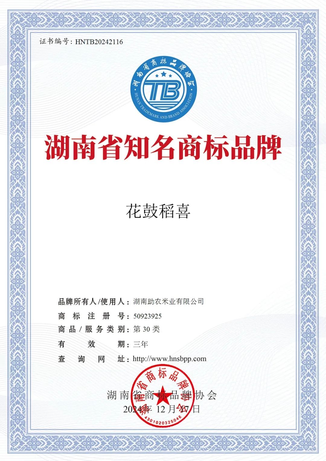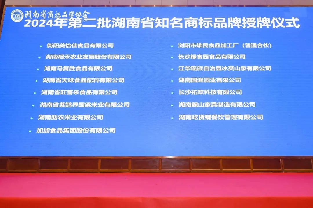 大会现场,备受关注的“湖南省知名商标品牌”名单正式揭晓,凭借高品质及深厚的文化底蕴,公司旗下品牌花鼓稻喜成功获评“湖南省知名商标品牌”。